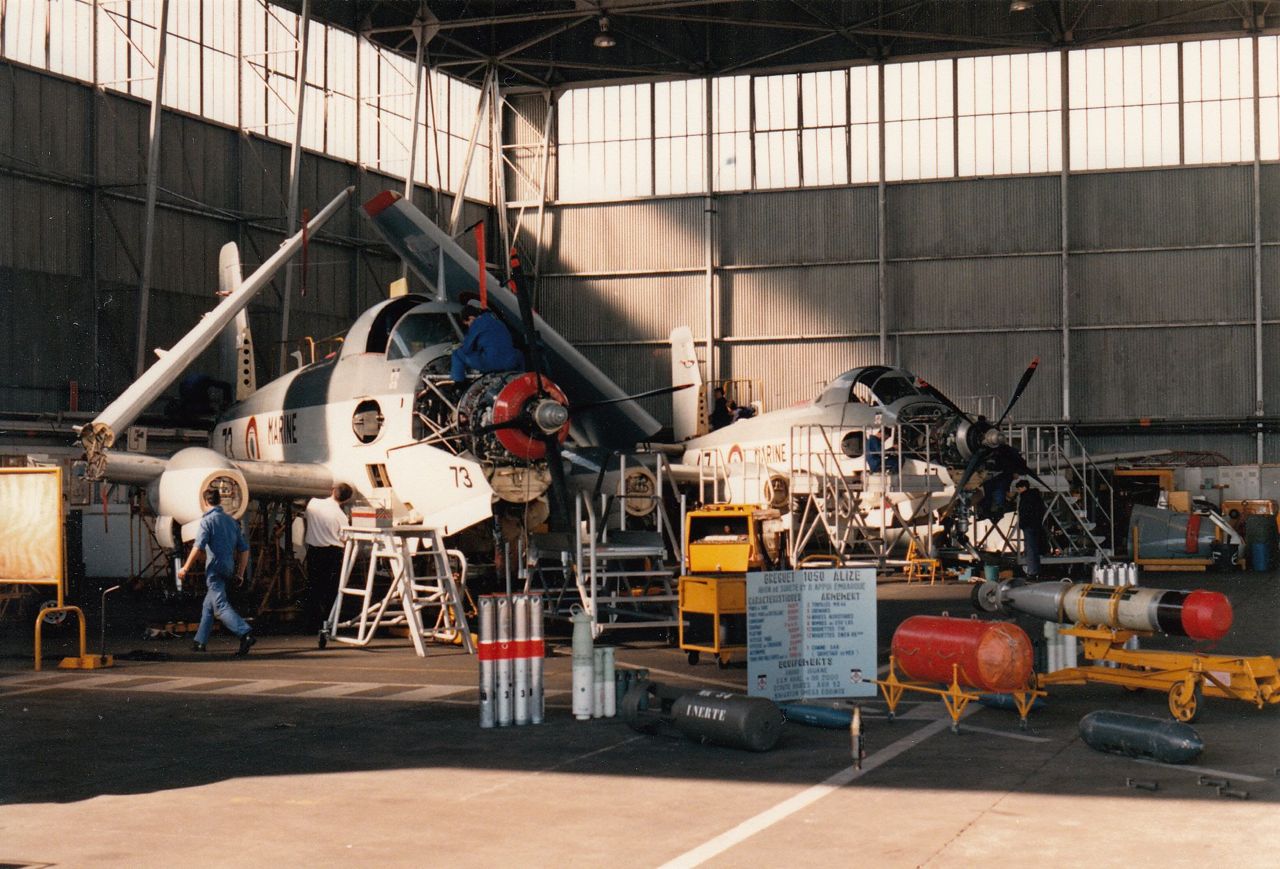 Lann-Bihoué (Lorient), 1992, flottille 4F, alizé 64 au hangar ...